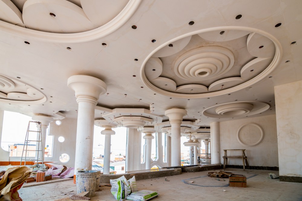 Tras graduarse de constructor civil de la Universidad Mayor de San Andrés (luego se tituló de ingeniero civil y arquitecto), Mamani vio que El Alto no tenía una identidad arquitectónica. Era una ciudad monocromática, llena de polvo y rodeada de cordilleras secas. Y ahí surgió la idea de darle colorido, por medio de un estilo que rompiera con los dogmas. “En los trabajos, decoraciones y diseños interiores trabajo en obra. Como Gaudí. Él se metía a trabajar dentro de la obra, diseñaba y dibujaba en las paredes, y empezaba a trabajar con sus obreros”, dice. “A mí me gusta meterme en el trabajo, no en el escritorio. Los que trabajan en el escritorio existen en cantidad, como arena en el mar. Ponerse el overol es diferente. Ahí corre la sangre”.