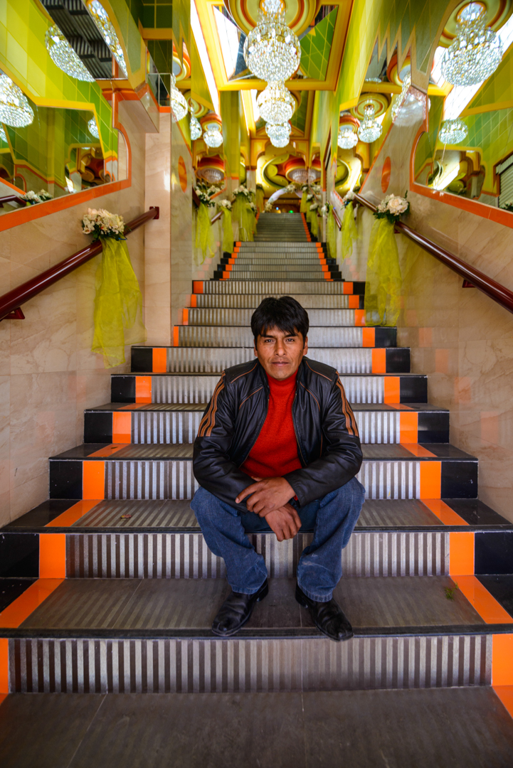 La cúpula del edificio está reservada para el chalet —o “cholet”—, el espacio donde reside el propietario. “Los cholets están en altura porque somos migrantes del campo a la ciudad”, explica Mamani. “En el campo, tú convives con la naturaleza ampliamente. En El Alto, todo es de piedra y asfaltado. Pero, cuando estás encima del cholet, tienes toda una vista panorámica donde, emocionalmente, convives con la naturaleza”.
